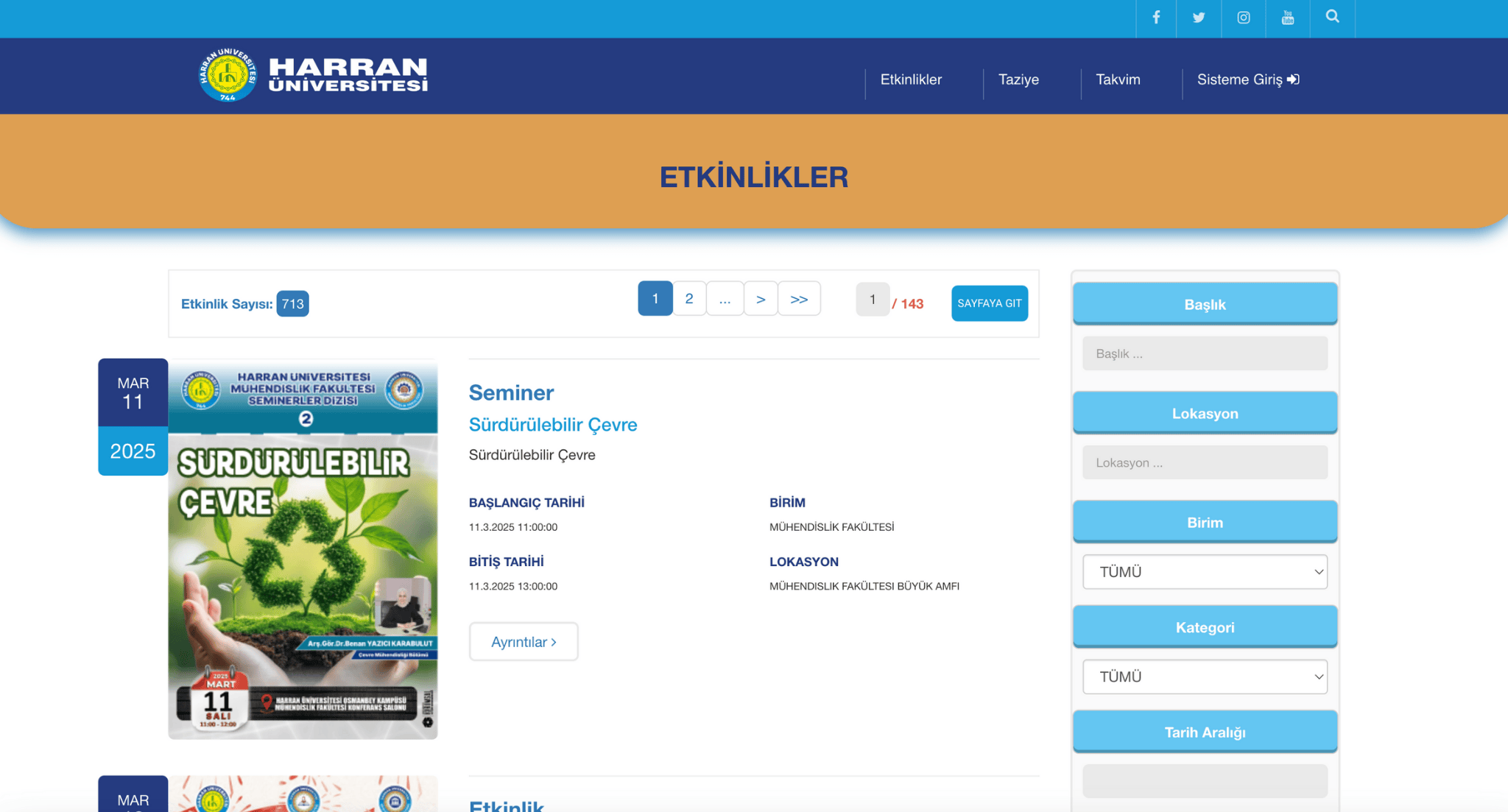 https://etkinlik.harran.edu.tr/ adresinden ulaşabilirsiniz. Üniversitemiz kurumsal hafızası niteliğ…